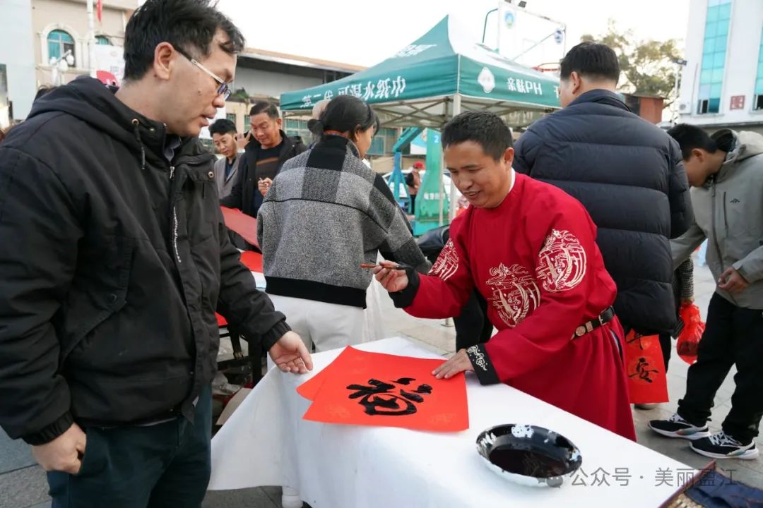 “要说这浓浓的年味儿啊,肯定少不了一幅手写的春联。”活动现场,由当地德高望重的文化名人及书法技艺精湛的老师组成的志愿服务队,挥毫泼墨,为群众免费书写春联、送上福字,一份份饱含温度与分量的“文化年货”就此诞生。