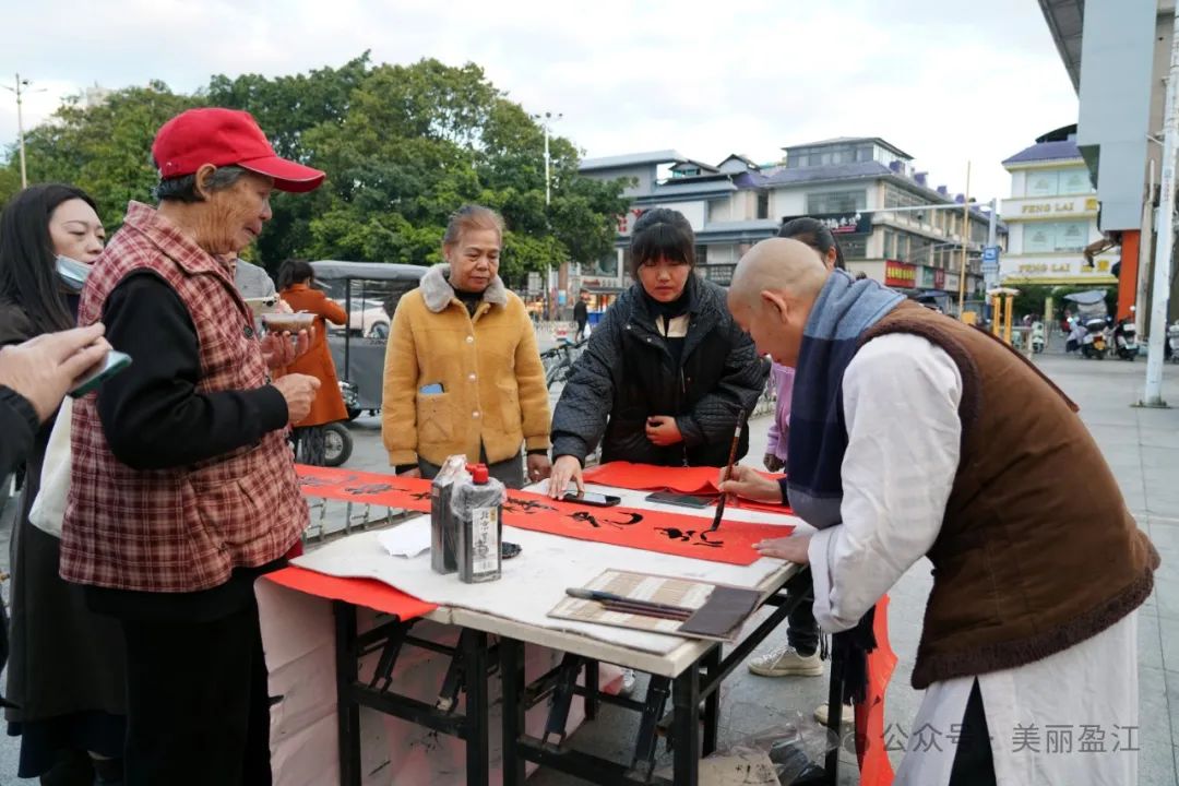“看到活动预告,我一大早就赶来等着啦,盼了好久,终于领到了康老师亲手写的春联和福字。”盈湖社区的一位居民兴奋地说道。“我家每年的春联都指定要段老师写,今年又如愿以偿啦!”在盈江县,“写春联送福字”已然成为每年春节群众最为期待的“文化盛宴”,那一笔一划书写出的不仅是新春的祝福,更是对传统文化的坚守与传承。