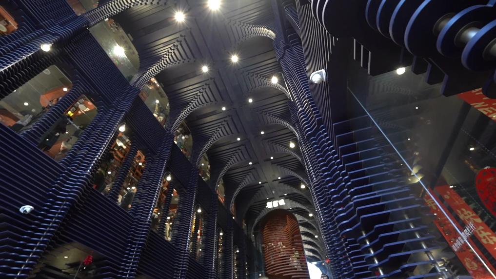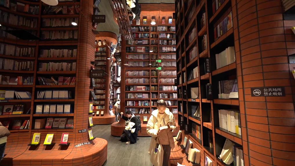 在天津意式风情区,这里有一家极具特色的首店——天津钟书阁,它自开业起就备受关注。书店内部幽蓝前厅的装潢和立柱书架,为消费者提供了沉浸式阅读体验。