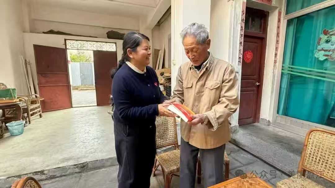 围绕增强离退休干部党支部的战斗堡垒作用,扎实开展精准化、个性化组织关怀与理论宣传工作。在送学上门过程中,工作人员与老干部亲切交流思想动态,及时传递组织温暖,93岁高龄的退休干部龙治安动情表示:“组织时刻挂念着我们这些老同志,上门送学让我及时了解了党的好政策,心里特别温暖。”此外,通过支部专题座谈,引导老干部党员发挥先锋模范作用,带头学习宣传党的二十届四中全会精神,为盈江高质量发展贡献“银发智慧”,切实增强老干部在政治上的归属感与认同感。