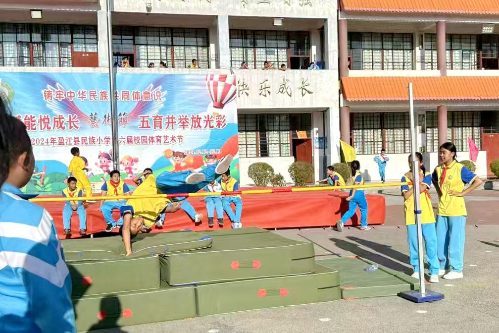 2024年12月12日至13日,盈江县民族小学举办第六届校园体育文化艺术节,以“体艺赋能悦成长 五育并举放光彩”为主题,深入贯彻党的教育方针,扎实推进“五育并举”,落实立德树人根本任务。