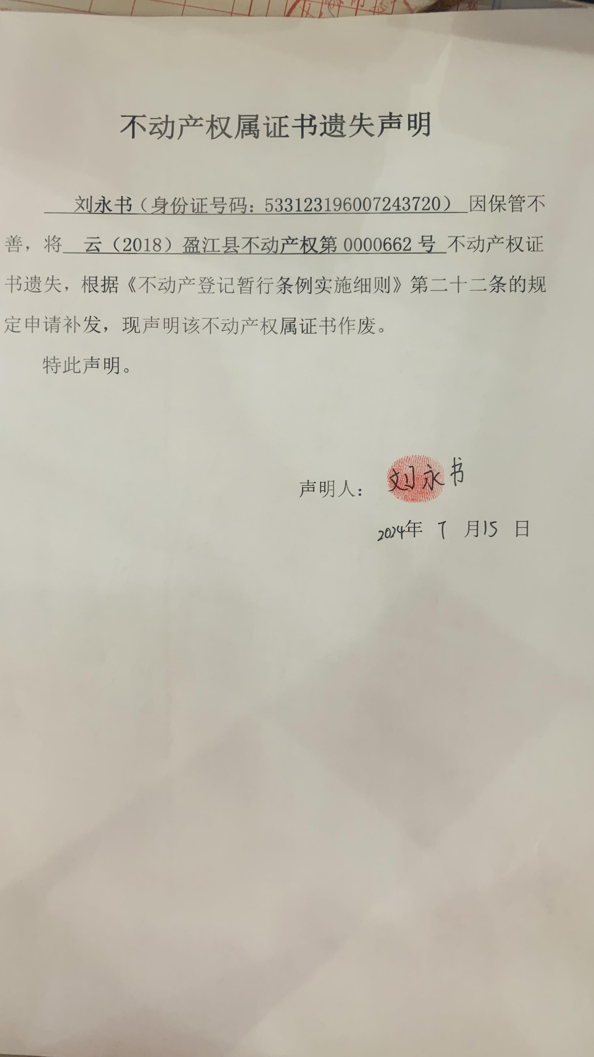 不动产权证书/登记证明遗失(灭失)声明(左显高)