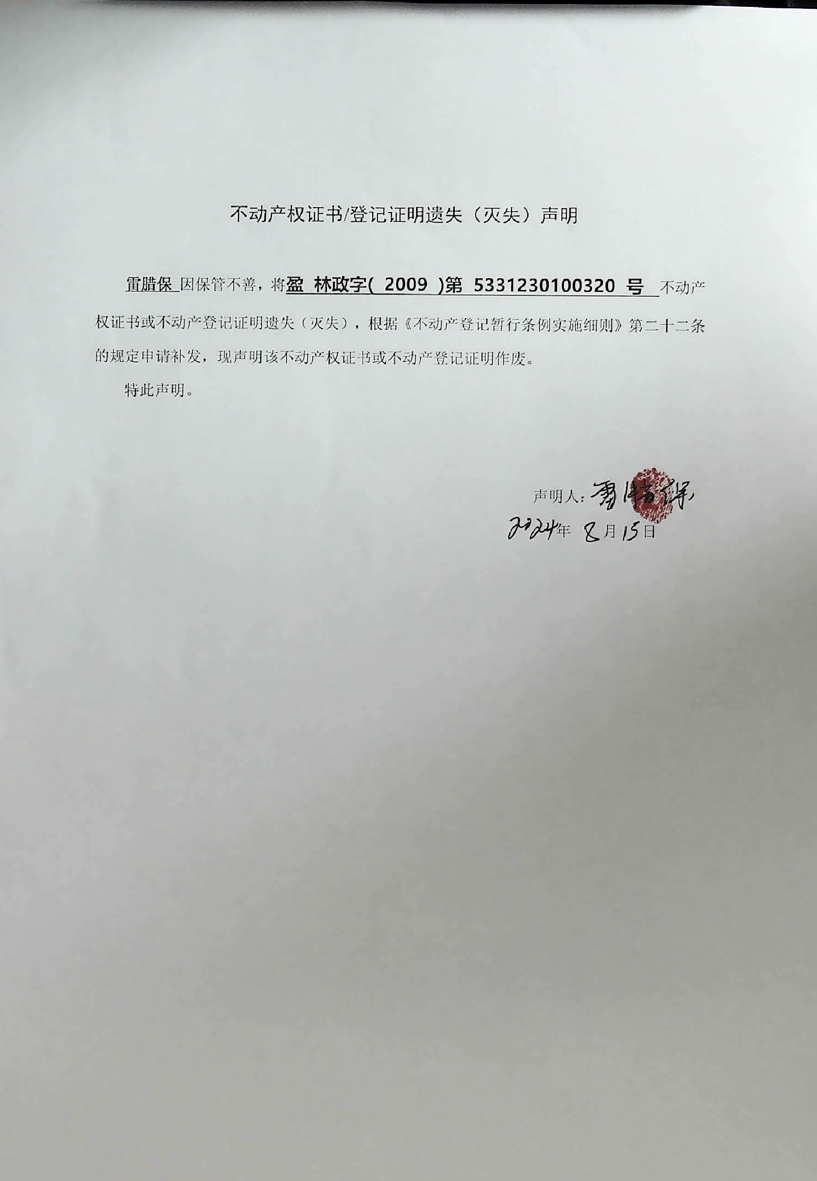 不动产权证书/登记证明遗失(灭失)声明(雷腊保)