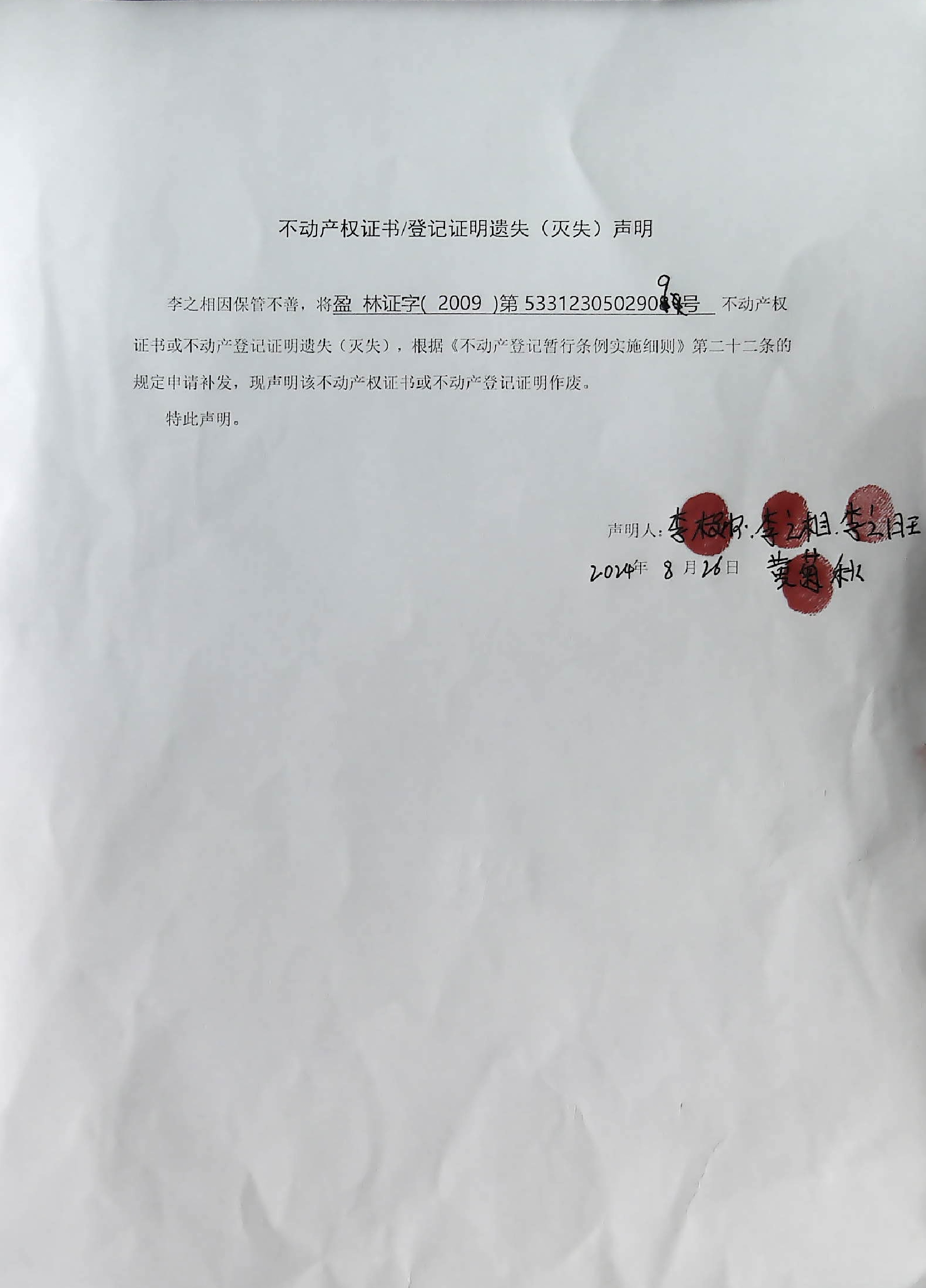 不动产权证书/登记证明遗失(灭失)声明(李之相)