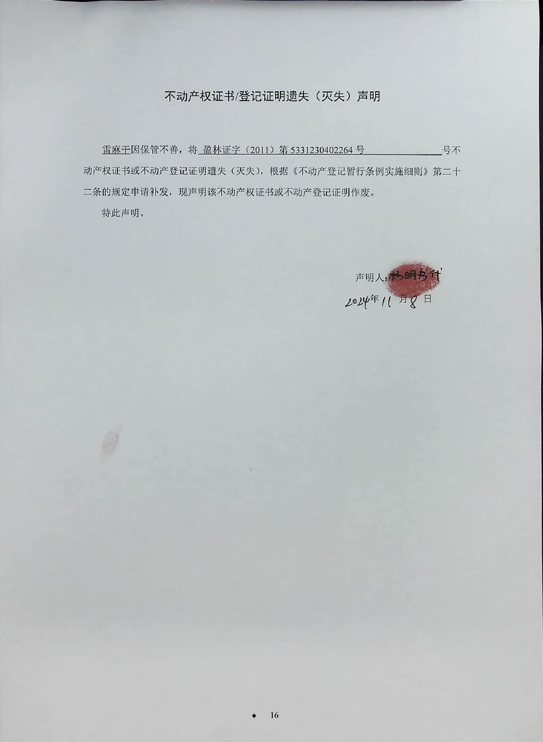 不动产权证书/登记证明遗失(灭失)声明(雷麻干)