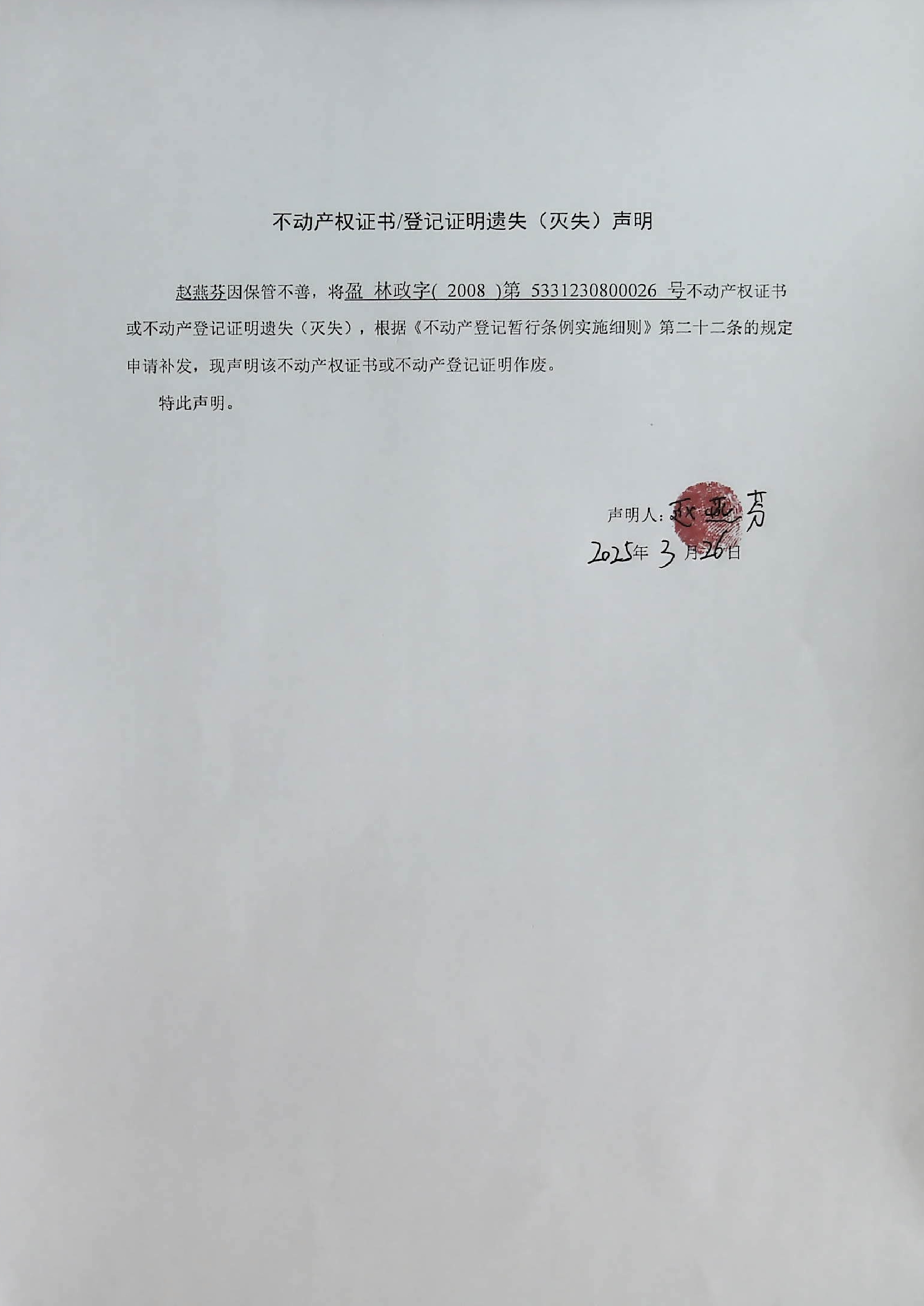 不动产权证书/登记证明遗失(灭失)声明(赵燕芬)