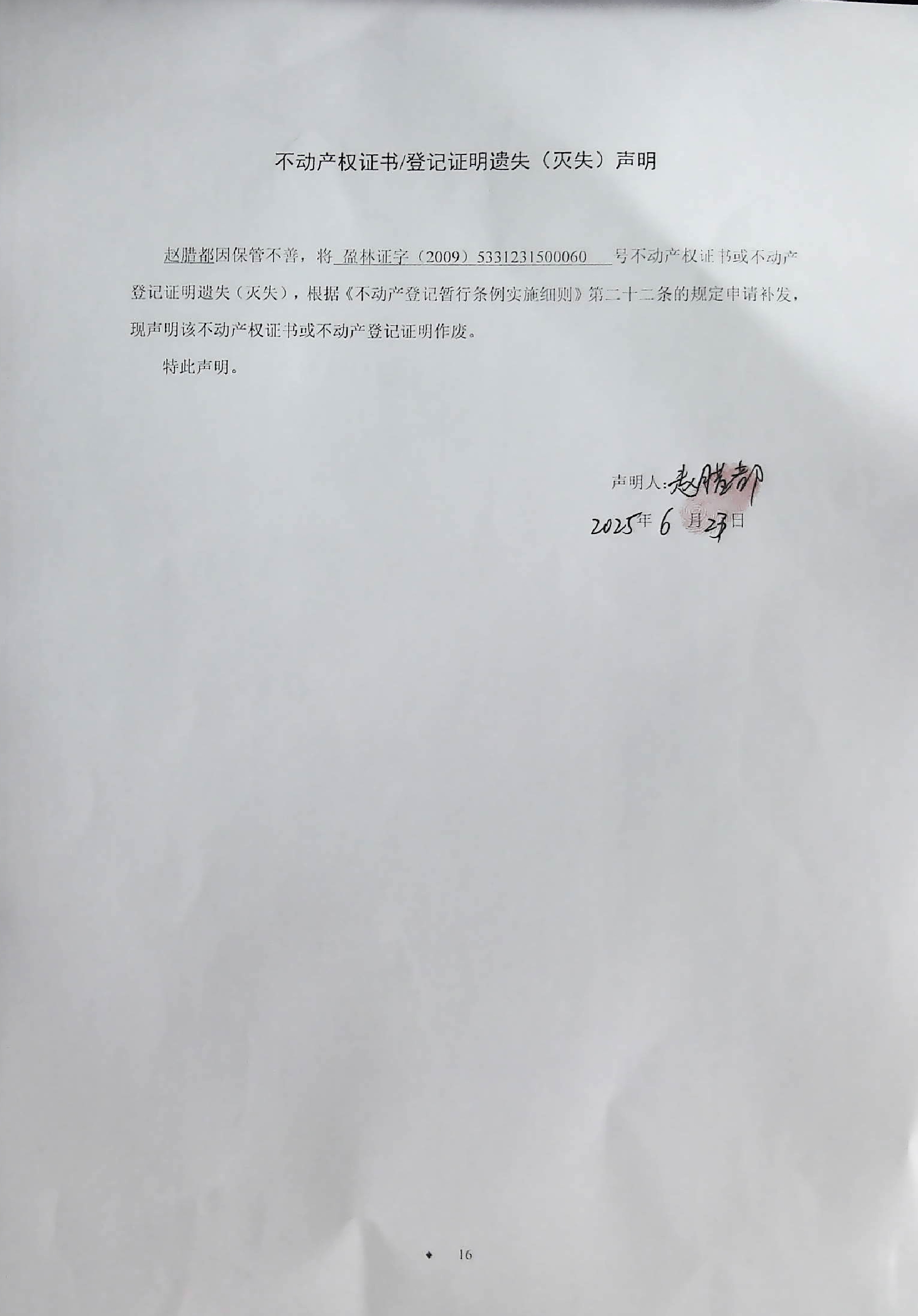 不动产权证书/登记证明遗失(灭失)声明(赵腊都)