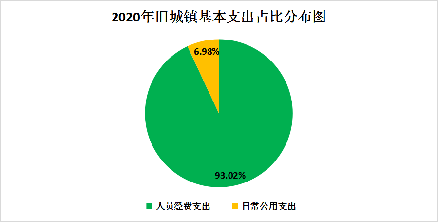 盈江县旧城镇部门2020年度支出合计3,440.34万元。其中:基本支出1,250.46万元,占总支出的36.35%;项目支出2,189.88万元,占总支出的63.65%;上缴上级支出、经营支出、对附属单位补助支出共0万元,占总支出的0%。与上年2242.58万元对比增加1197.76万元,增长53.41%,主要原因分析:1.基本支出增加235.7万元,其中:人员经费支出增加229.04万元,因2019年、2020年两年社干补助及其他定额人员补助在2020年发放,中央自然灾害救灾补助资金支出增加及人员调入等原因;政府公用经费比2019年度支出增加6.65万元。2.项目支出增加962.06万元,原因为2020年统筹整合涉农项目、边转项目增多,疫情防控资金等项目支出增加,导致支出资金较上年增大。