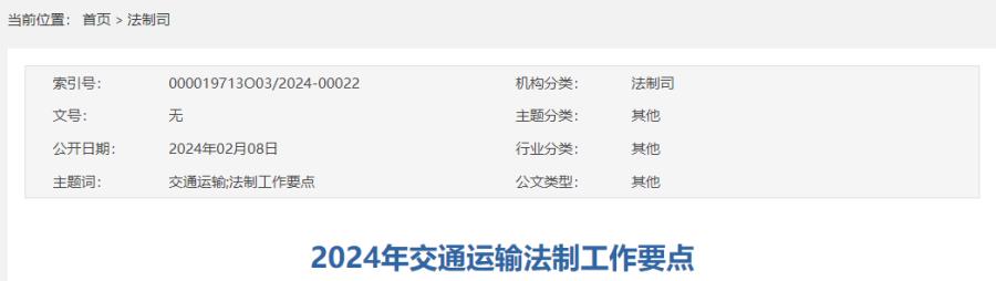 2024年交通运输法制工作的总体要求是:坚持以习近平新时代中国特色社会主义思想为指导,全面贯彻落实党的二十大精神和二十届二中全会精神,深入学习贯彻习近平法治思想,持续深化交通法治建设,加快完善综合交通法规体系,推动执法队伍从数量规模向质量效能转变,为奋力加快建设交通强国、努力当好中国式现代化的开路先锋提供坚实法治服务保障。
