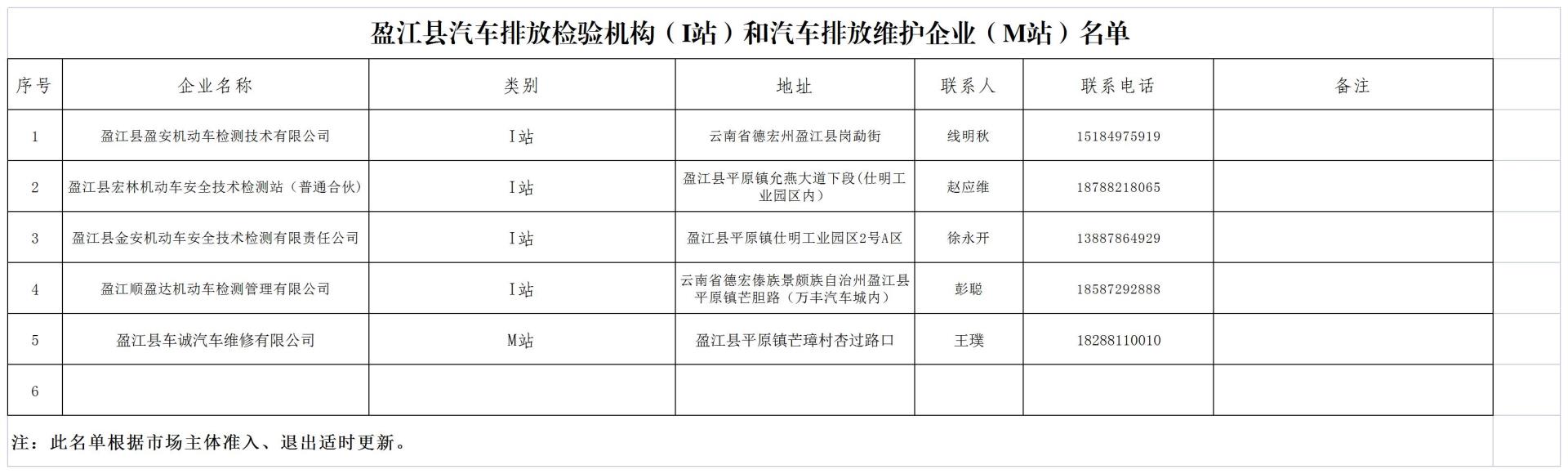 I站和M 站实行动态调整,企业名单第一次联合公布后,经企业自主申报,经德宏州生态环境局瑞丽分局审核,符合资质条件的I站由德宏州生态环境局瑞丽分局进行公布;经市交通运输局审核,符合资质条件的M站由市交通运输局进行公布。