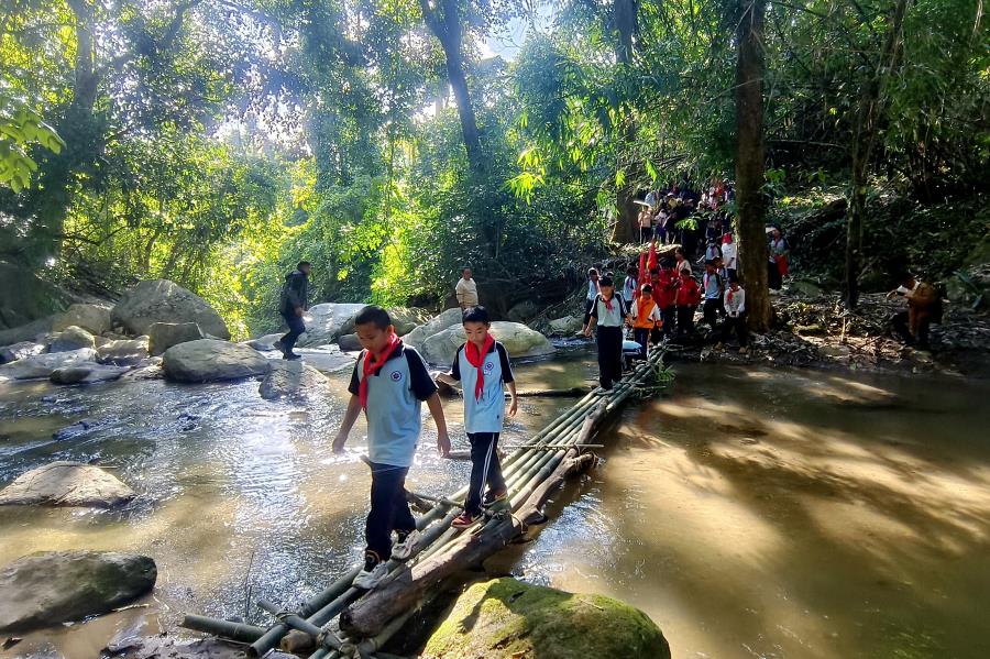 在格夺南片河雨林,在教官和老师们的带领下,学员们观察了各种雨林生物,结合雨林生物多样性知识,如有毒植物识别、野外取火、紧急救护基本技能等认真做了探究活动。让孩子们拥抱大自然,尽情感受着祖国山河的壮丽。