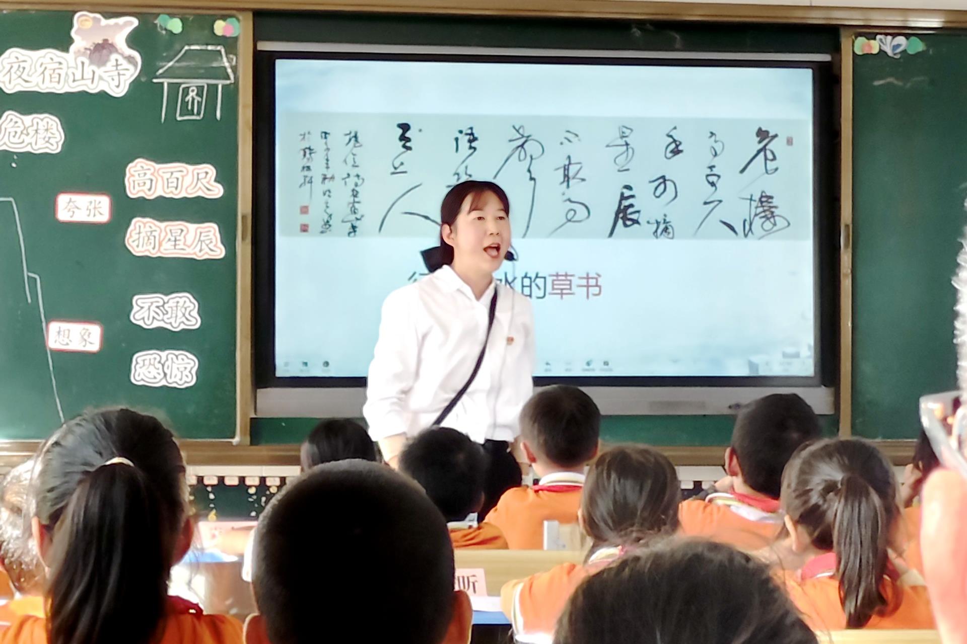 任成秋老师凭借其数十年诗教经验与热忱,以《夜宿山寺》为具体案例,生动展示了审美教育在教学中的融入,详细阐释了借助图文帮助学生理解古诗,以及利用图片与配乐诵读激发学生想象力的方法。如此教学,让学生在视觉与情感上均能与古诗共鸣,深刻领悟其内涵与魅力,极大激发了他们对古诗词学习的热情,也为芒章乡广大教师提供了古诗词教学的优秀范例,彰显了传统经典与现代教学理念融合提升教学效果的实践路径。
