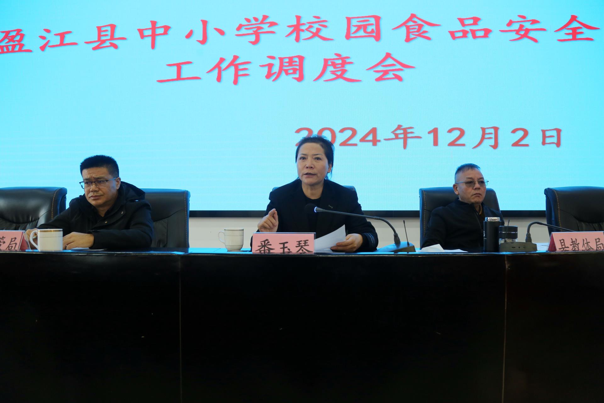 12月2日,盈江县召开中小学校园食品安全工作调度会,深入贯彻落实集中整治群众身边不正之风和腐败问题工作要求,推进校园食品安全整治工作走深走实。县人民政府副县长番玉琴出席并讲话,县教育体育局局长张云权主持会议。县市管局分管领导、县教体局领导班子、局机关各股室负责人、全县中小学校校长、幼儿园园长共计105人参加会议。