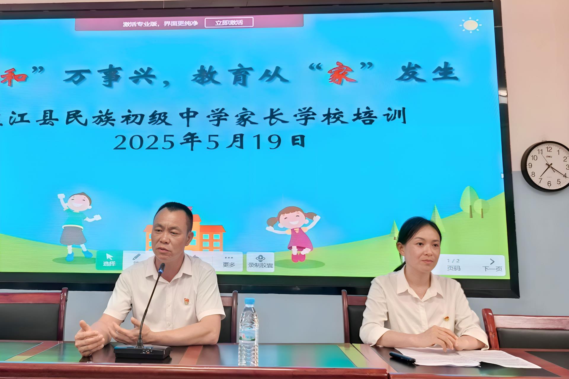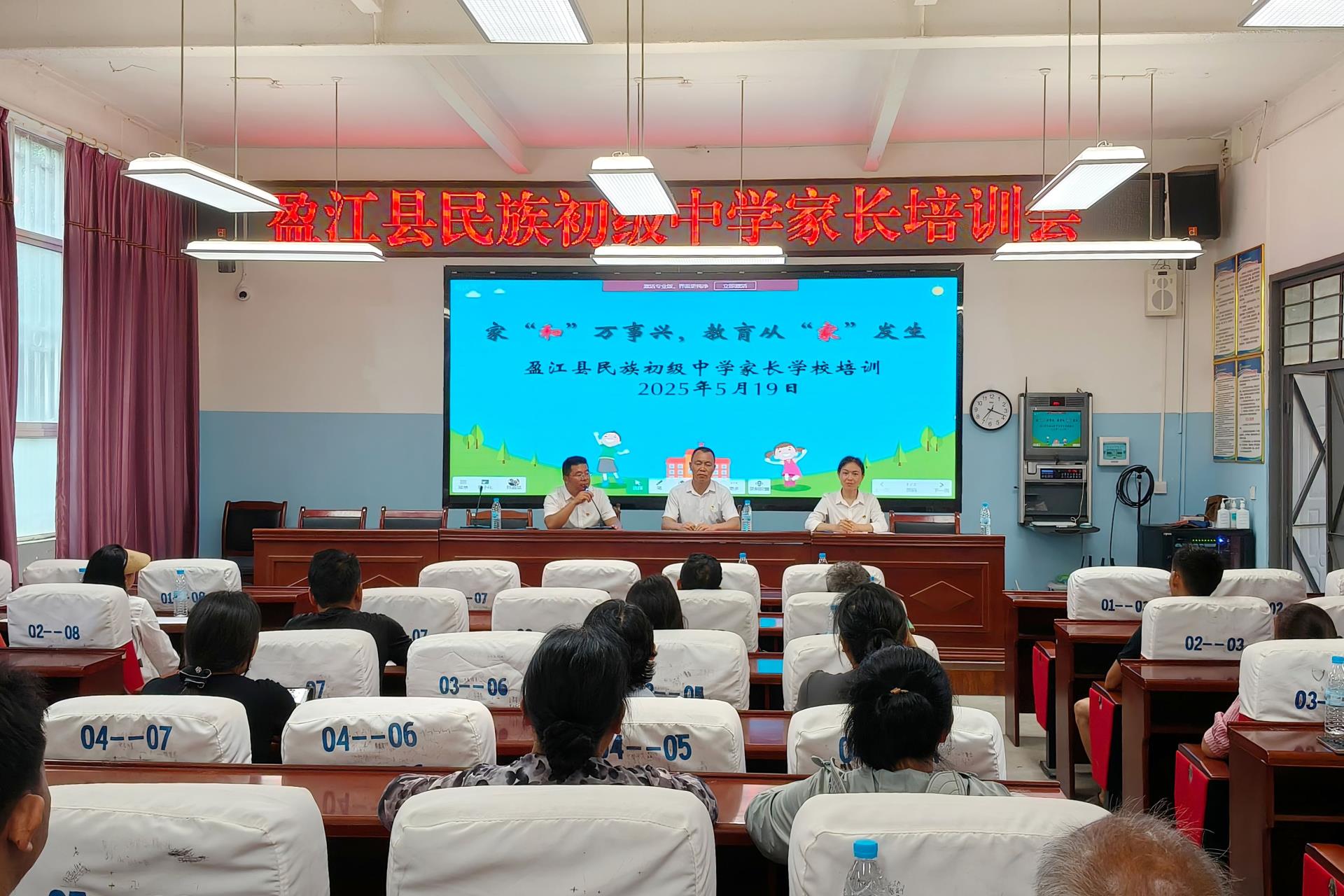 5月19日,盈江县民族初级中学开展2025年春季学期家长学校培训,以“家‘和’万事兴,教育从‘家’发生”为主题,七、八年级的120余名家长受邀参训。