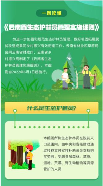 相关链接:云南省林业和草原局 云南省财政厅 云南省乡村振兴局关于印发《云南省生态护林员管理实施细则》的通知