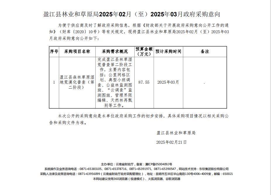 盈江县林业和草原局2025年02月(至)2025年03月政府采购意向