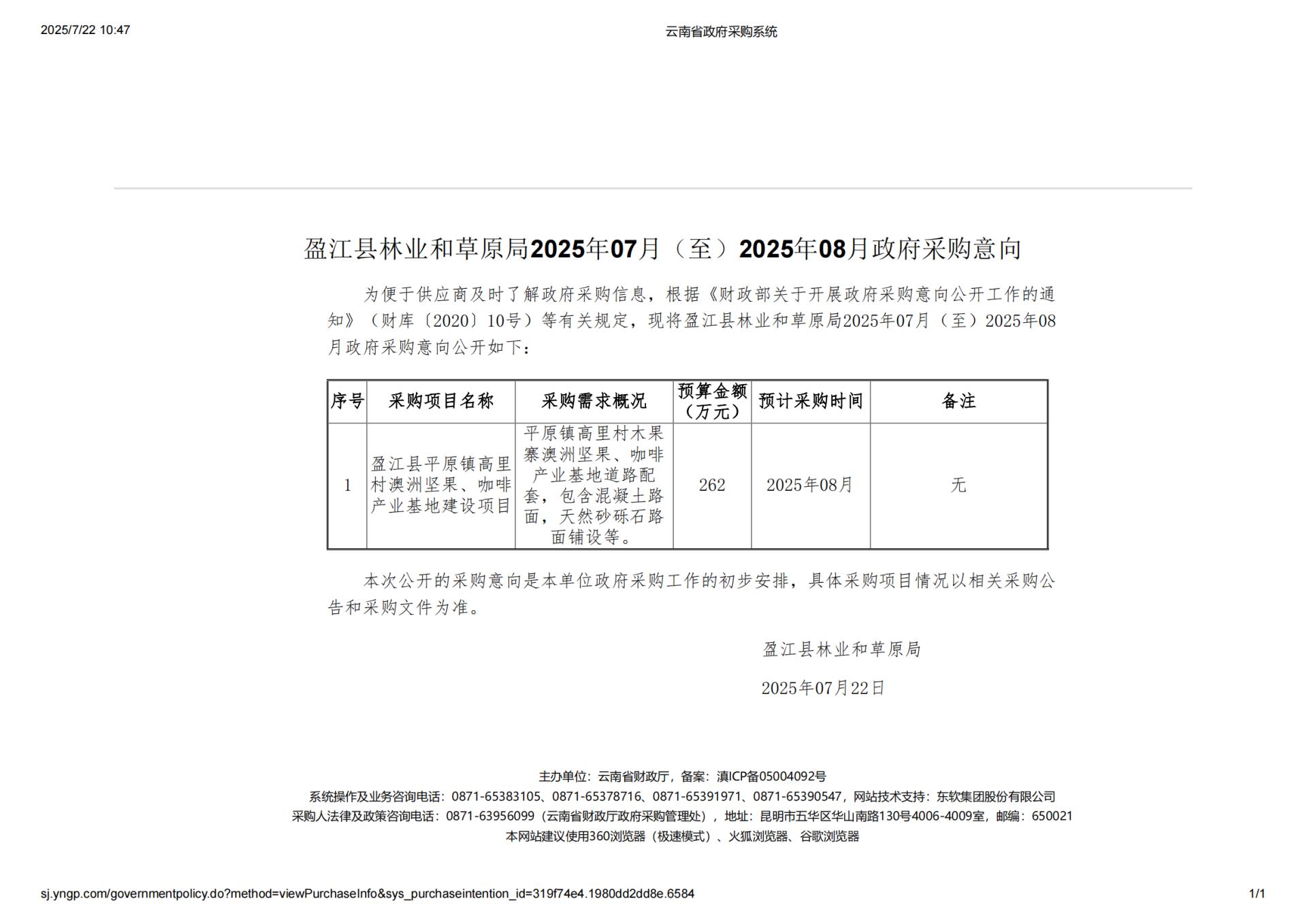 盈江县林业和草原局2025年10月(至)2025年10月政府采购意向
