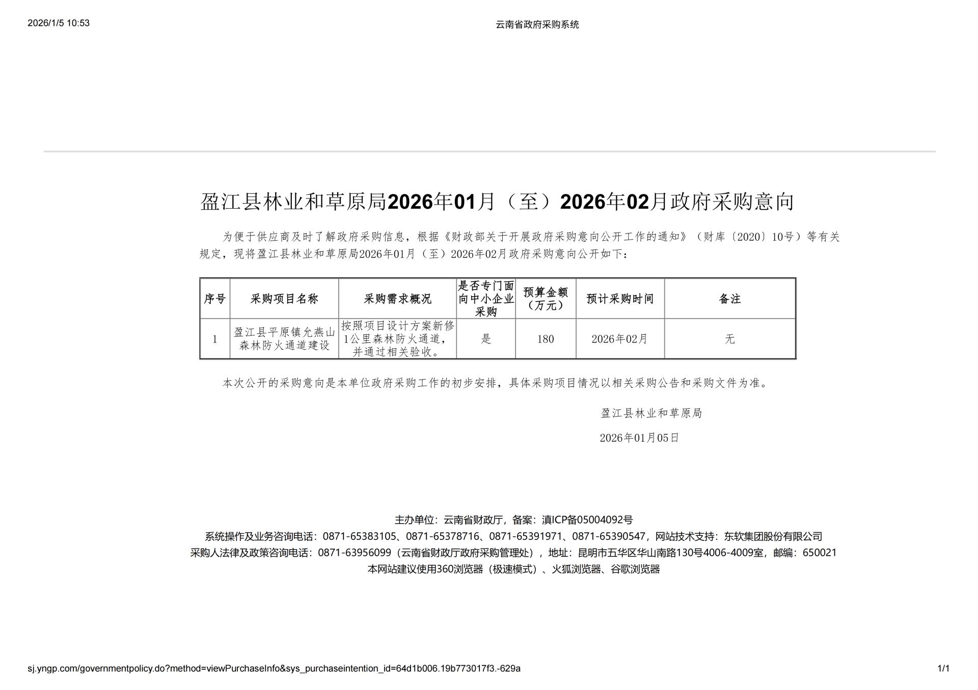 盈江县林业和草原局2026年01月(至)2026年02月政府采购意向