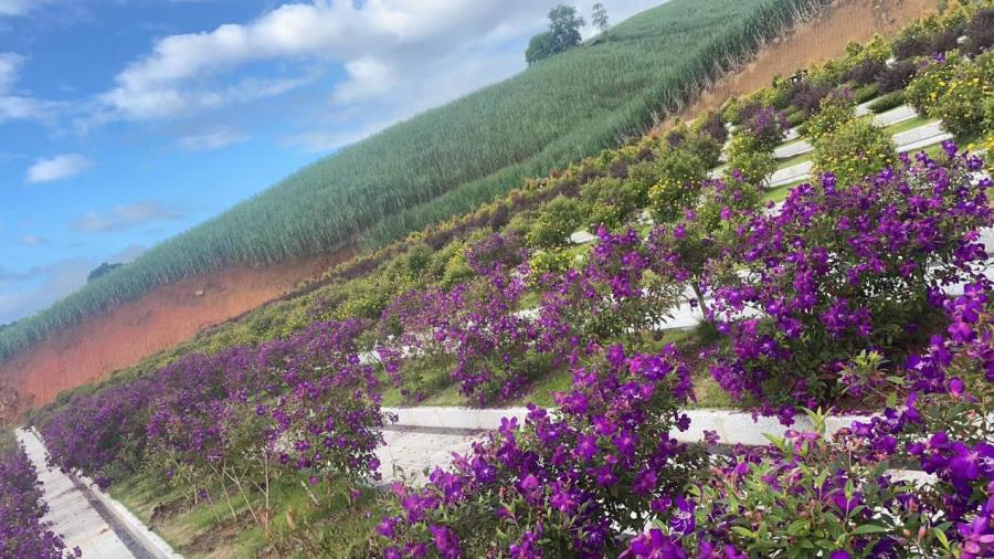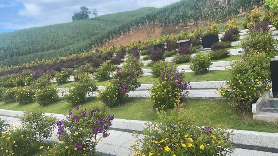 墓区和生态葬区种植了各种适应盈江气候的植物花草,修建了环绕园区的进出道路、景观石、凉亭、排水沟,摆放了园区防腐木垃圾桶。