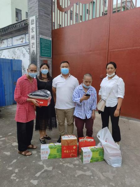 中秋节前一天,盏西敬老院院长带领部分职工到芒市遮放护康医院慰问了两名住院的特困救助对象,给他们送去了服装、月饼、水果等慰问品,并向医务人员了解两人病情,并告知配合治疗,争取早日出院回到敬老院,让老人们感受到了节日的气氛和敬老院这个大家庭的温暖。