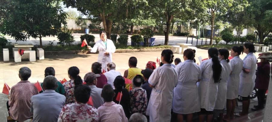 在这举国欢庆的日子里,盈江县太平敬老院组织院内供养对象开展了“喜迎二十大.奋进新征程”庆祝中国共产党第二十次全国代表大会胜利召开的纪念活动。首先由院长周玉佼向老人们宣传我们祖国20大召开的重要意义,接着教老人们学唱歌曲《我和我的祖国》,老人们学得很认真用心,在音乐声中用真诚的歌声来感恩中国共产党,感恩党和政府给了这些孤寡老人一个幸福的晚年生活,感恩工作人员的用心照顾让老人们活得自在,感恩在敬老院这个温暖的大家庭里,孤寡老人们找到了来自各个地方的家人。活动现场不时传来阵阵掌声及欢声笑语,气氛很是热闹。