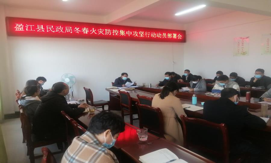 根据《德宏州民政系统冬春火灾防控工作方案的通知(NO.213)》、《盈江县消防安全委员会关于印发冬春火灾防控集中攻坚行动总体方案的通知(盈消防委民[2022]11号)》要求,盈江县民政局党组高度重视,于2022年12月12日上午10时召开“盈江县民政局2022年冬春火灾防控集中攻坚行动动员部署会”。