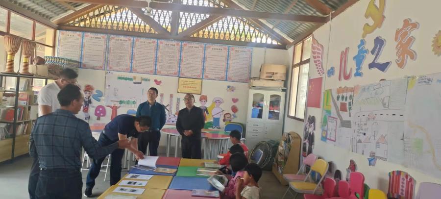 紧接着调研组到油松岭乡茶山搬迁点调研社工和志愿服务工作开展情况。林副厅长查看了茶山党支部引领青年志愿服务队参与村寨建设,实现共建共赢的发展,还查看了妇女儿童之家的建设。当看到有小朋友在儿童之家开心玩耍看书时,林副厅长关切的询问了孩子的一些基本情况,并鼓励孩子好好学习,强调油松岭乡要重视社工站工作,真正发挥好志愿服务队和妇女儿童之家的作用。