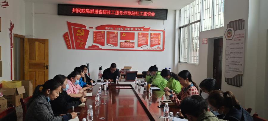 为进一步加强省级社工服务站建设,强化社工站规范化、标准化、专业化的示范引领作用,着力打造成云岭社工领军人才,近日,州民政局派送3名专业社工人员到盈江县平原镇盈湖社区驻站开展工作。
