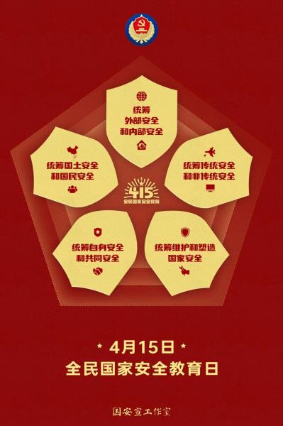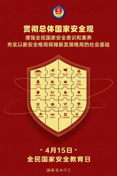 今年4月15日是第八个全民国家安全教育日。司法部、全国普法办日前联合印发通知,部署开展2023年全民国家安全教育日普法宣传活动。今年的活动主题是“贯彻总体国家安全观,增强全民国家安全意识和素养,夯实以新安全格局保障新发展格局的社会基础”。