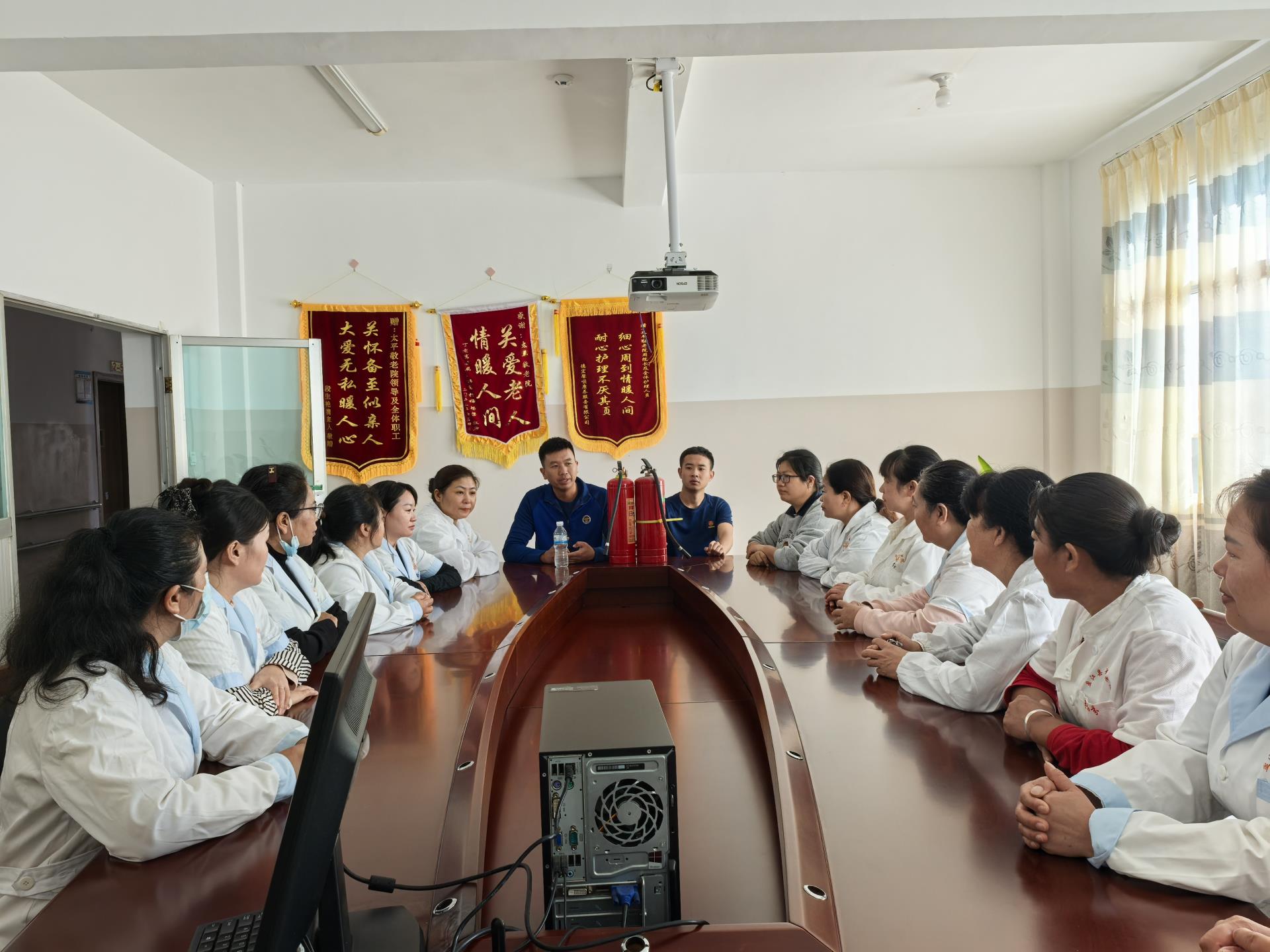 11月19日上午,盈江县太平敬老院组织全体工作人员开展消防演练,特邀太平镇消防专职队队长刘永胜全程指导,重点围绕消防设施实操与火灾疏散撤离展开,切实提升院内应急处置能力。