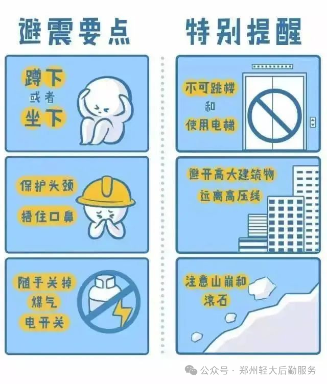 迅速关闭电源、燃气,选择空间小的地方躲避,如卫生间、厨房、储藏室。避开吊灯、电扇等悬挂物件,用被子、枕头、坐垫等保护头部。