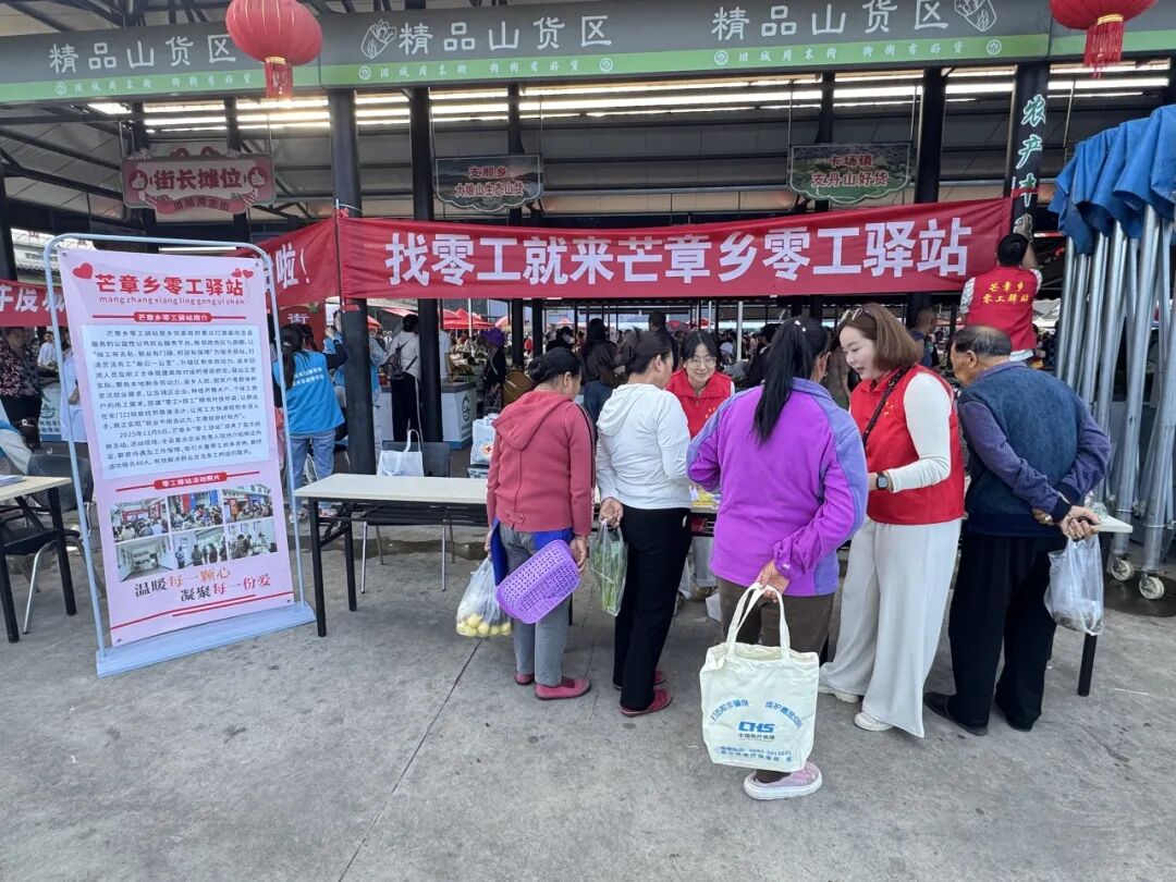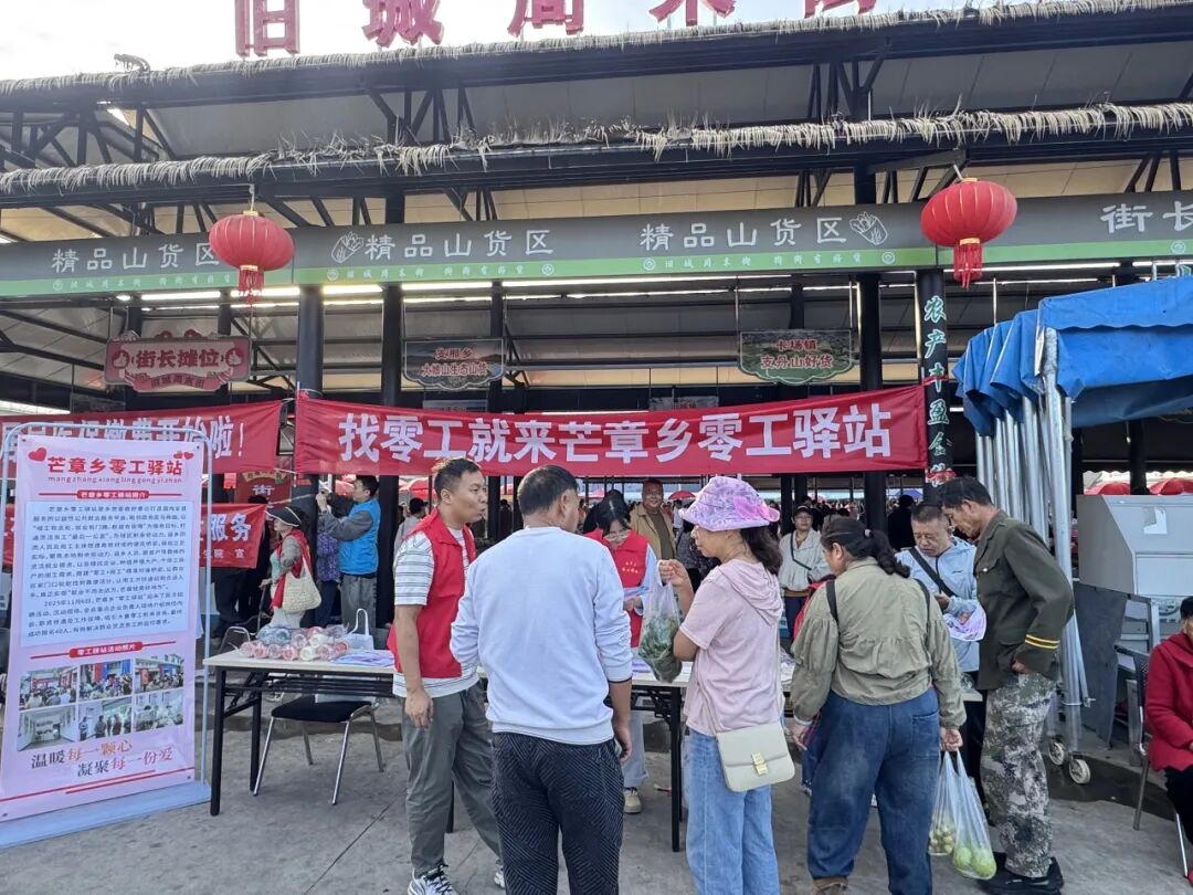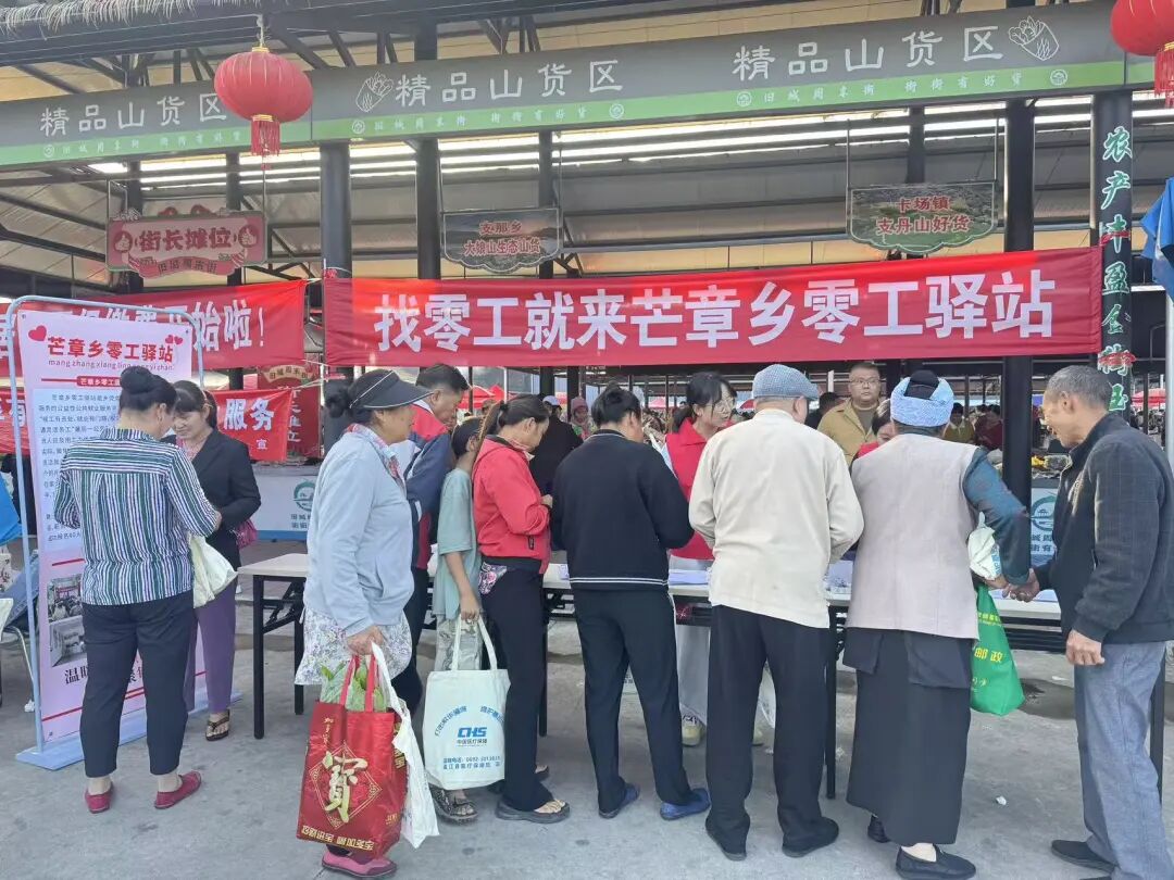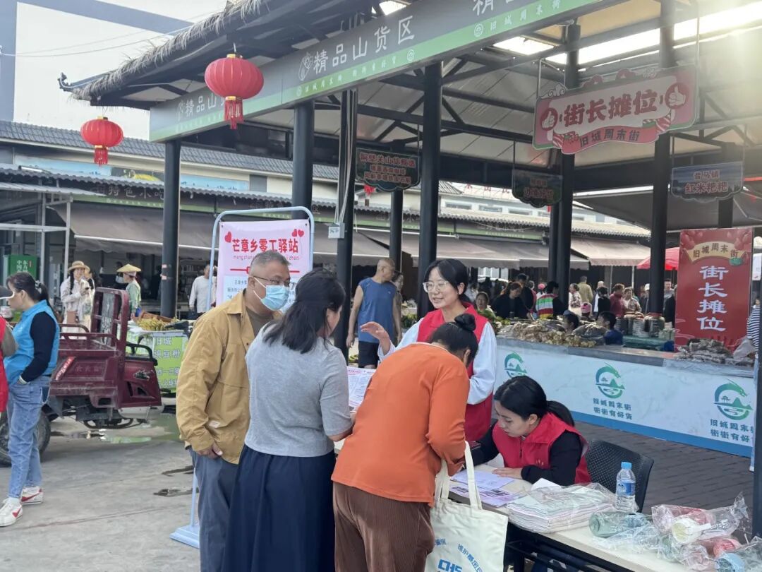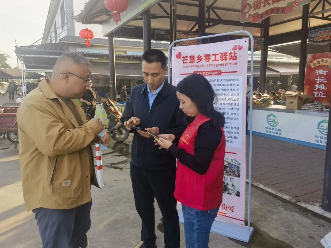 11月8日,正值旧城周末街第98个集市日,芒章零工驿站主动将服务窗口前移,进驻旧城周末街,成功开展零工驿站推广活动。此次活动打破了芒章乡域界限,迈向了辐射更广、服务更强的区域性平台,现场气氛热烈,受到群众一致好评。