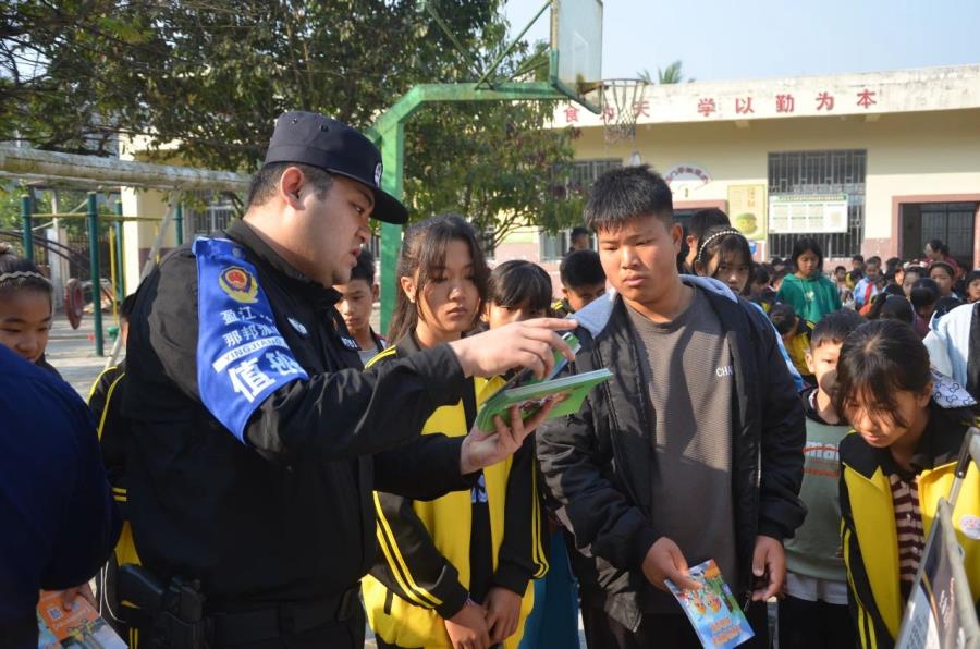 为进一步夯实校园安全工作基础,不断深化普法教育,营造“学法、懂法、守法、用法”的校园氛围。2023年3月1日,盈江县公安局那邦派出所民警联合那邦交警中队、那邦镇消防中队到辖区学校开展以“安全与法治”为主题的法治宣传进校园教育活动,为师生送上了一堂内容丰富的法治教育课。
