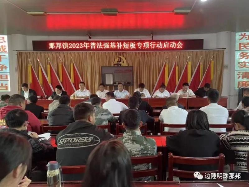 召开启动会,统一思想、明确目标。为深入学习领悟会议精神,切实提高政治站位,增强群众敬畏法律、尊重生命的意识,那邦镇召开普法强基补短板专项行动启动会。要求各村委会、镇直站所,要坚持问题为导向,紧盯短板弱项,深入村寨实地摸排,精准划分重点区域、重点人群。围绕“谁来普、向谁普、普什么”的工作思路,细化工作措施,落实落细专项行动各项要求。