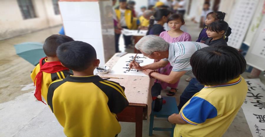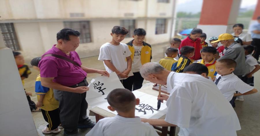 为进一步弘扬中华民族传统文化,引导学生热爱书法艺术,领悟汉字和书法的魅力。那邦镇党委政府邀请盈江县老年大学书法老师传授同学们书法技艺,展示书法作品,赠送书法作品。让同学们在墨香中感知深厚的文化底蕴,养成良好的书写习惯,营造了浓厚的书香校园。