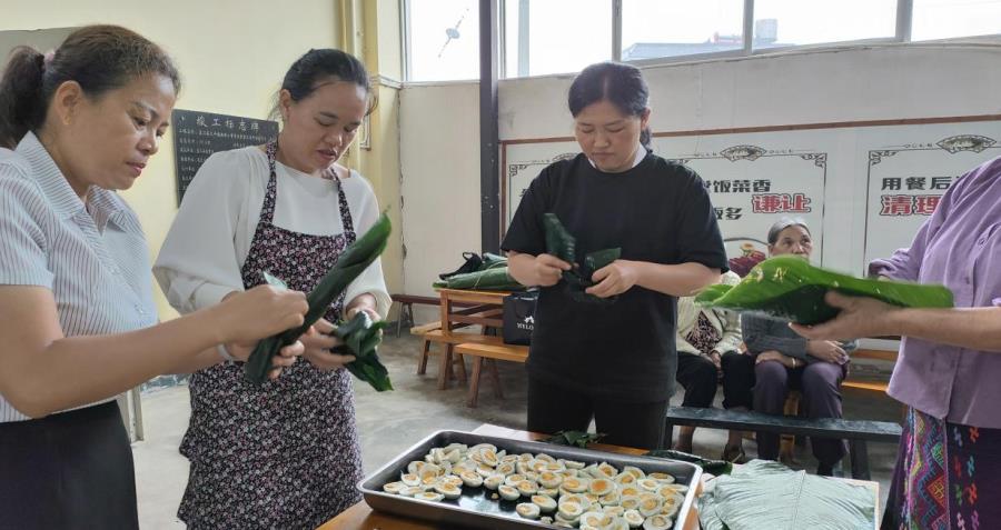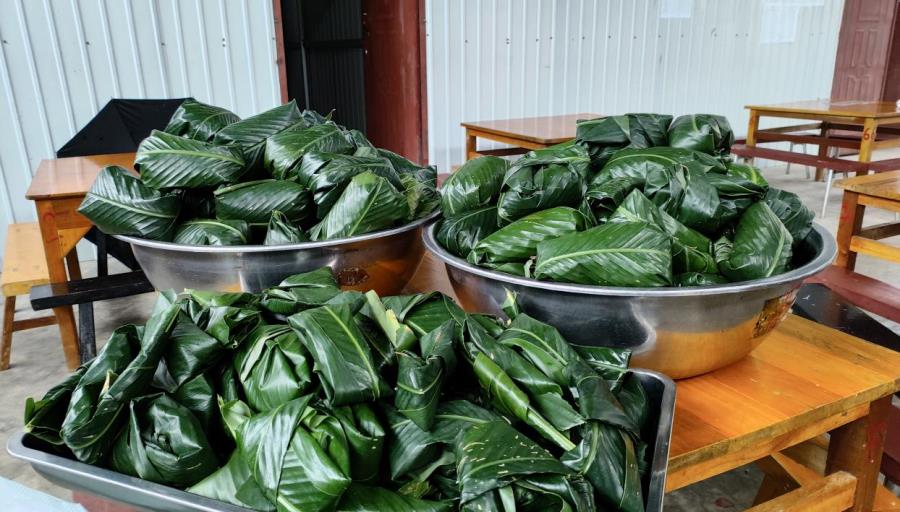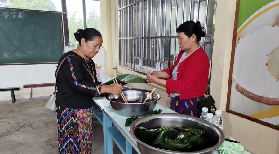 文艺汇演结束后,学校老师们亲自动手制作了具有民族特色的景颇族叶包饭,家长同学们围坐在一起,分享着美味和快乐时光,脸上洋溢着幸福的笑容,六一儿童节也在同学们的欢声笑语中渐渐地落下帷幕。