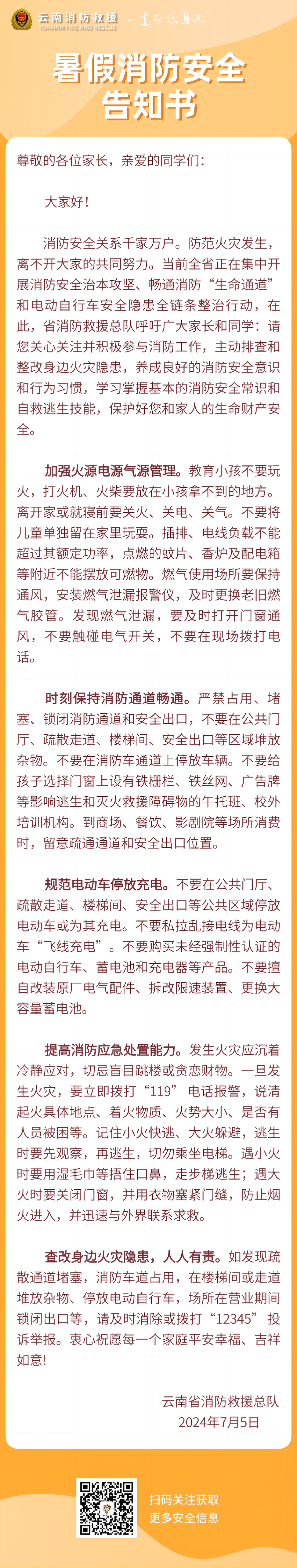 2024年暑假消防安全告知书