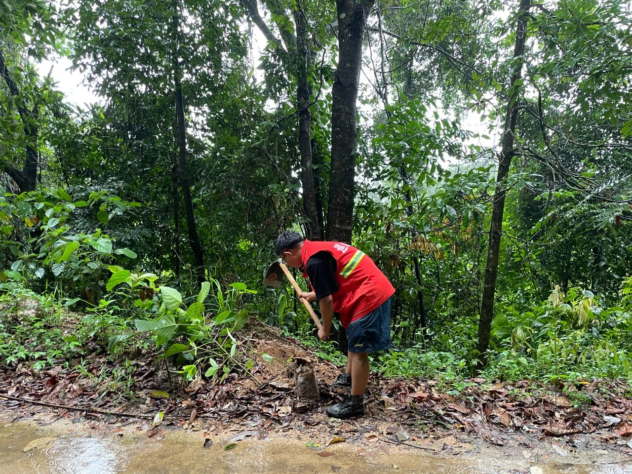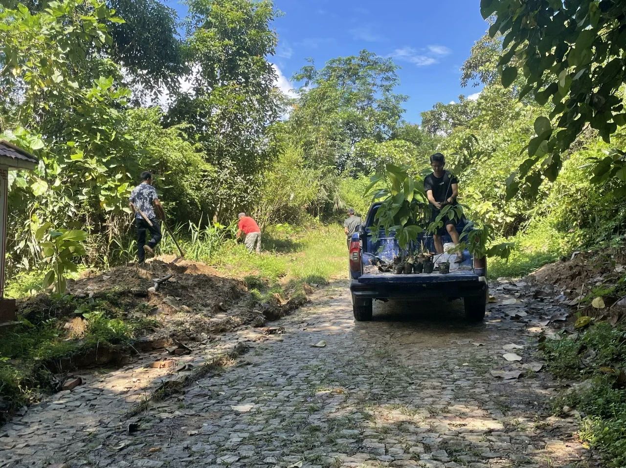 培训结束后,全体参会立即投身到义务植树活动中。他们来到上田坝国防路、芒那公路、榕树王、村寨道路两旁等地,齐心协力共同植树250颗,其中:东京龙脑香50颗、千果榄仁40、木棉花80颗、盈江柳桉20颗、千果榄仁40颗、大叶风吹楠20颗。在植树过程中,大家分工明确,有的挖坑,有的培土,有的浇水,每一个环节都认真细致、有条不紊。经过一番努力,新栽种的树苗整齐排列,为大地增添了一片新绿。