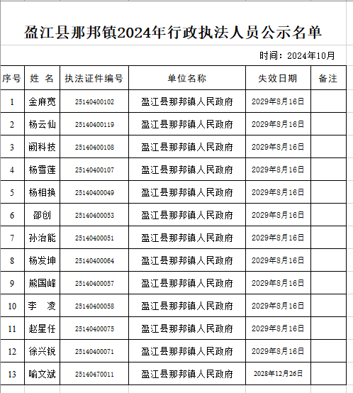 盈江县那邦镇2024年行政执法人员公示名单