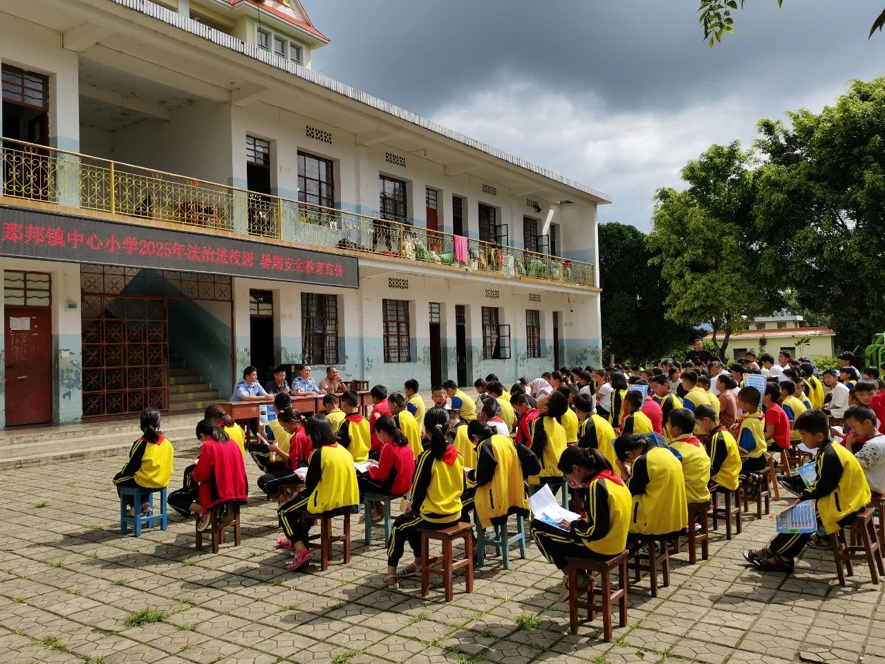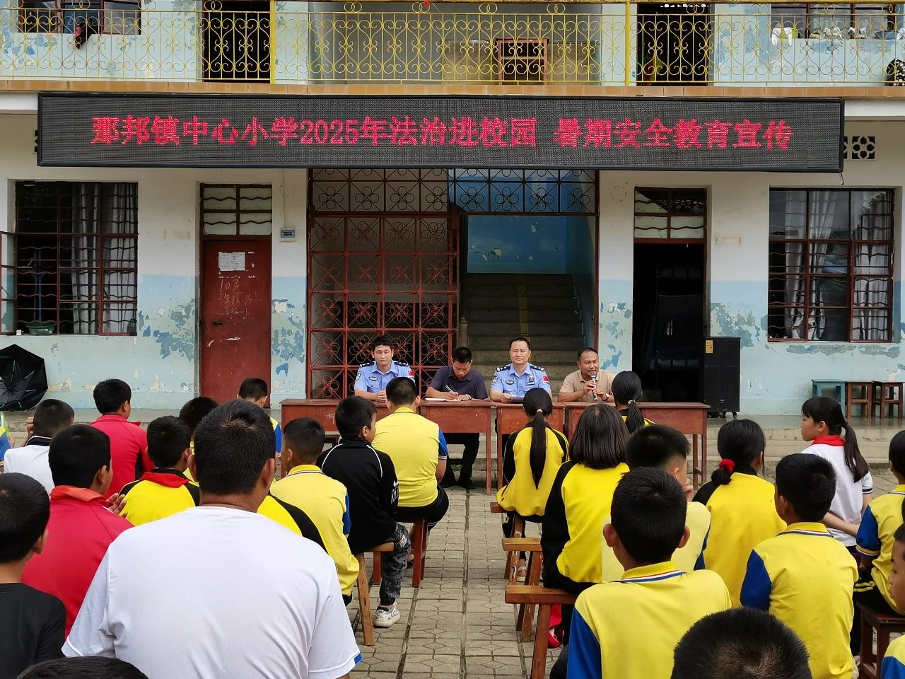 为切实增强家长法治观念与学生安全防范意识,强化暑期未成年人监护责任落实,构建家校共育防护网,6月30日,那邦镇人民政府联合畹町出入境边检站那邦分站走进那邦镇中心小学,开展主题为"快乐过暑假 安全不'放假'"的法治安全教育活动,170余名师生及家长参与此次课堂。