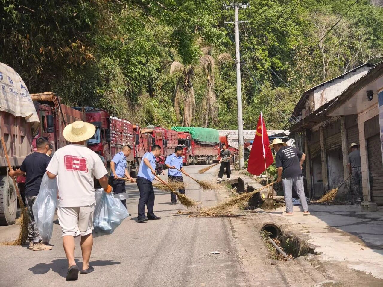 为切实推进那邦镇人居环境整治提升工作,打造整洁宜居的乡镇环境,同时做好雨季来临前期防汛备汛工作,全力保障我镇辖区汛期排水系统畅通无阻,那邦镇紧扣“晴天整治、雨季无忧”工作思路,周密部署、多方联动,镇村联合辖区派出所、卫生院、小学、边防部队等各单位开展全域人居环境整治提升专项行动,以扎实举措兼顾环境美化与防汛安全,取得显著阶段性成效。