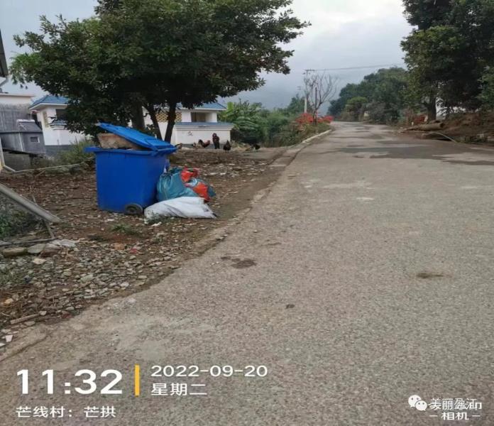 5.芒线村芒拱村民小组:路面有少量泥沙、泥土,垃圾清运不及时。