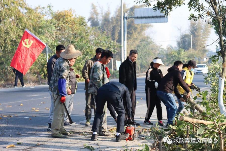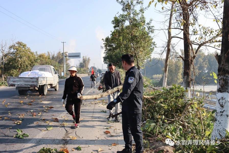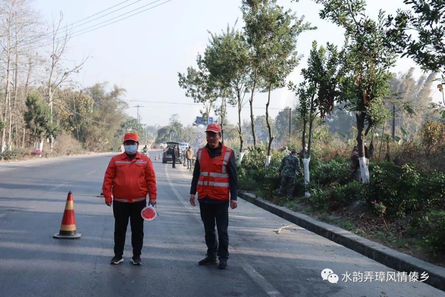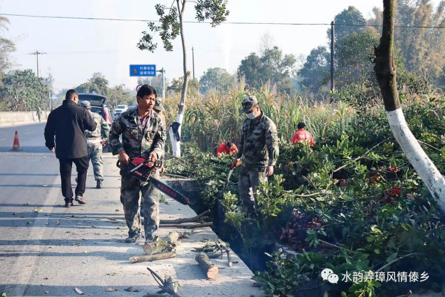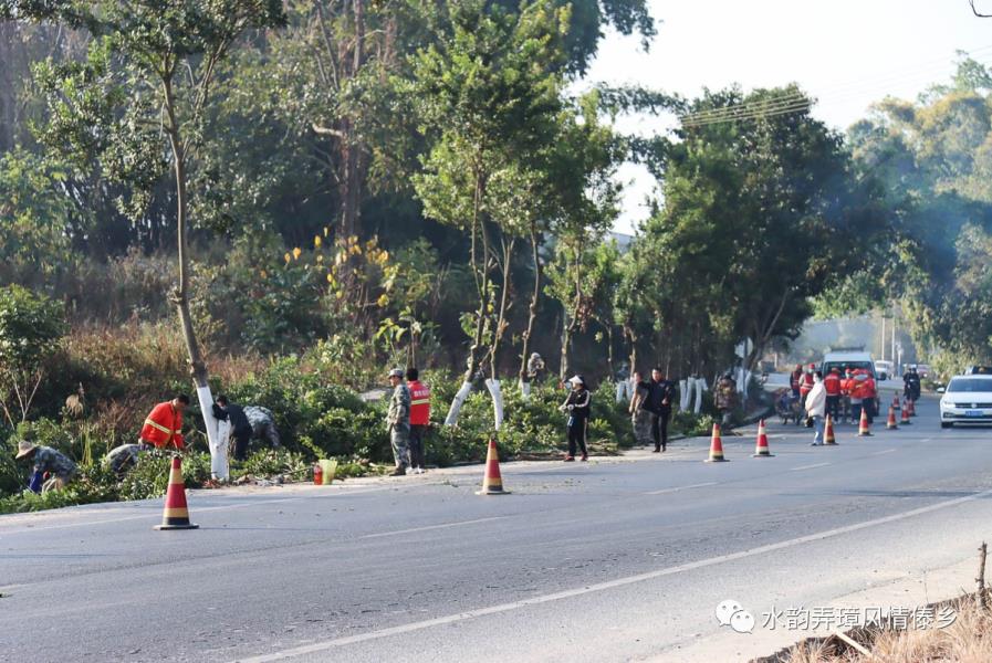 1月31日,弄璋镇联合盈江公路分局、盈江路政管理大队、南缓村“两委”,组织养护工人、民兵、党员共80余人对弄璋中学路口遮挡视线的树木进行了清理。在现场,大家利用手锯、专业剪刀、砍刀等工具对树木进行修剪,利用推土机对路边遮挡视线的沙土堆进行推移,并安排人员在路边实时观察反馈树木修剪情况并警示提醒来往路人。