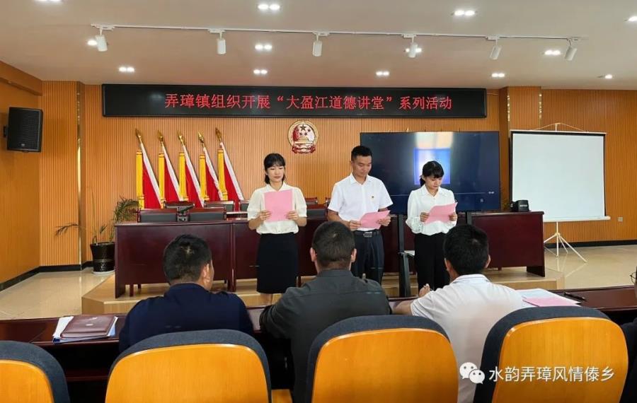“道德,是一个人终生也上不完的人生之课,走不完的人生之路,希望通过这次‘大盈江道德讲堂’系列活动,大家能够有所收获,并把今天的所学、所感、所悟,真真正正地落实到日常的工作、学习和生活中。让我们从今天开始,从现在开始,从自己开始,爱岗敬业,自觉做道德建设的宣传者、实践者、捍卫者,成为一个有高尚道德修养的公民。”镇党委书记田涛涛结合全镇情况,向大家介绍了一批用实际行动践行中华民族传统孝义的群众,他号召全镇上下以他们为榜样,学习身边这些鲜活的人和事。