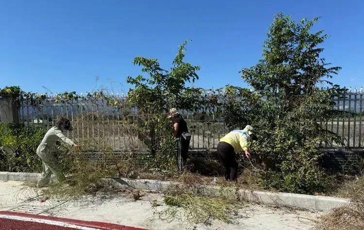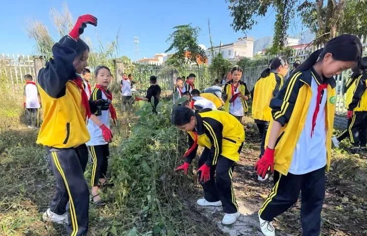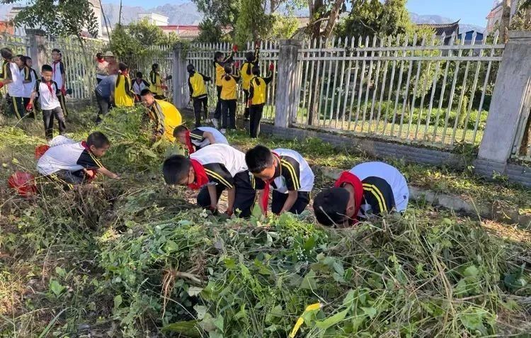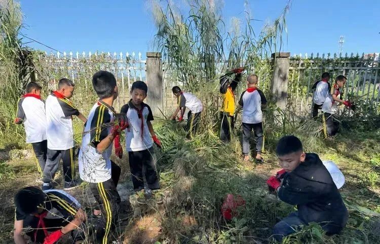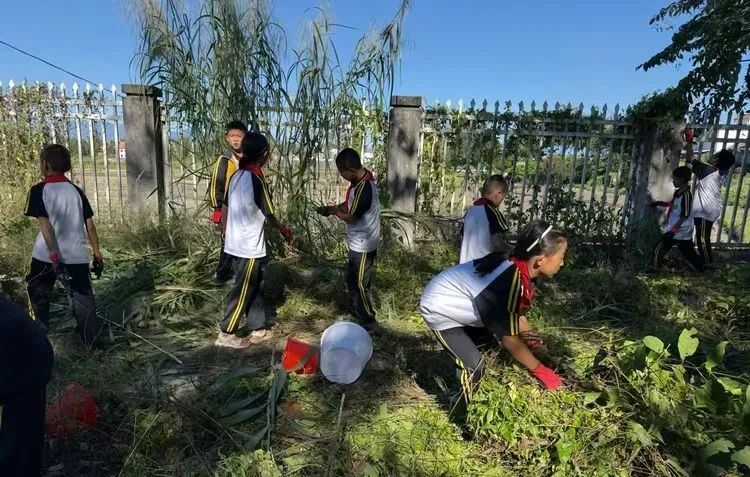 在蓝天白云的见证下,同学们热情高涨,积极参与,为这次活动注入了无限活力与生机。只见他们手持工具,认真细致地清除着每一株杂草,时而弯腰低头,时而蹲下身来,有的拔,有的铲,有的运,干得热火朝天,整个除草场面忙而不乱,井然有序。他们不怕脏、不怕累,用实际行动为绿色家园贡献着自己的力量。