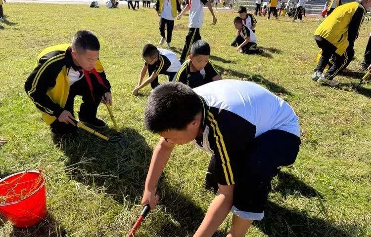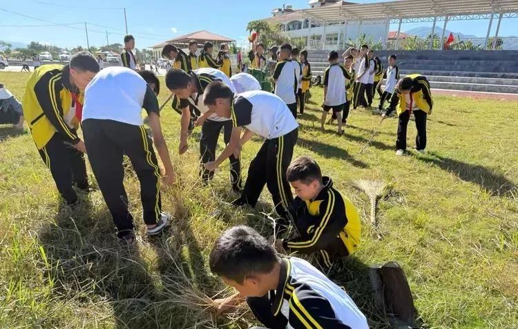 活动开始前,老师们向学生们介绍了杂草的危害和除草的方法,并强调了安全注意事项。随后,同学们在老师的带领下,分班来到运动场的各个区域,开始了除草工作。