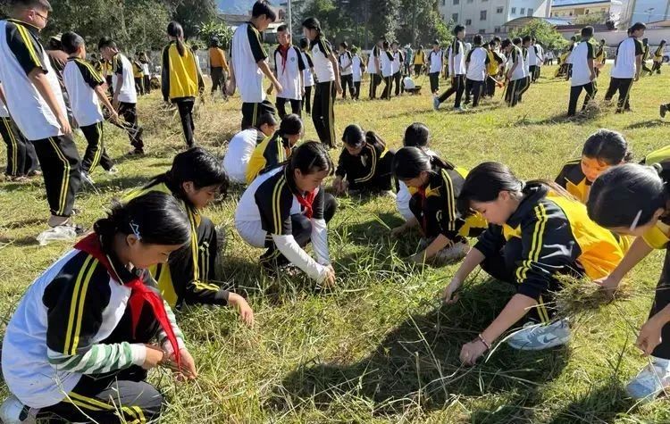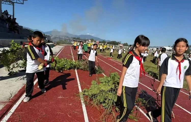 为深入贯彻习近平总书记关于劳动教育的深刻论述,帮助学生树立“劳动最光荣、劳动最崇高、劳动最伟大、劳动最美丽”的意识,让学生亲手体验劳动乐趣,收获劳动快乐,理解劳动意义,培养五育并举的时代新人。11月12日,弄璋镇中心小学组织五、六年级各班学生前往运动场开展劳动实践教育。