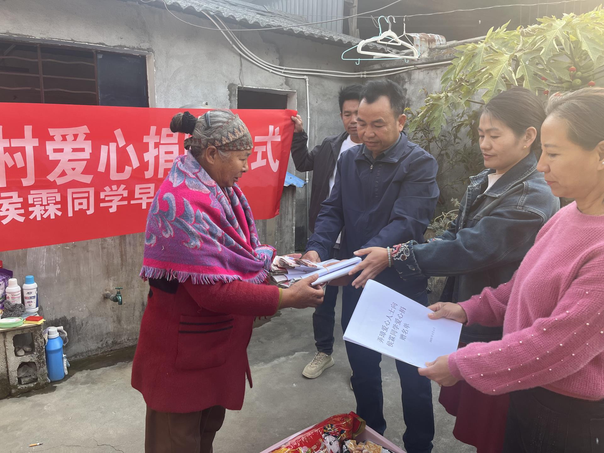 大家慷慨解囊,村上不断收到来自爱心村民的捐款。3月6日,村干部第一时间将第一笔善款送到小霖家中,一笔笔捐款、一份份爱心,汇成一股暖流,温暖着侯霖小朋友一家人的心。