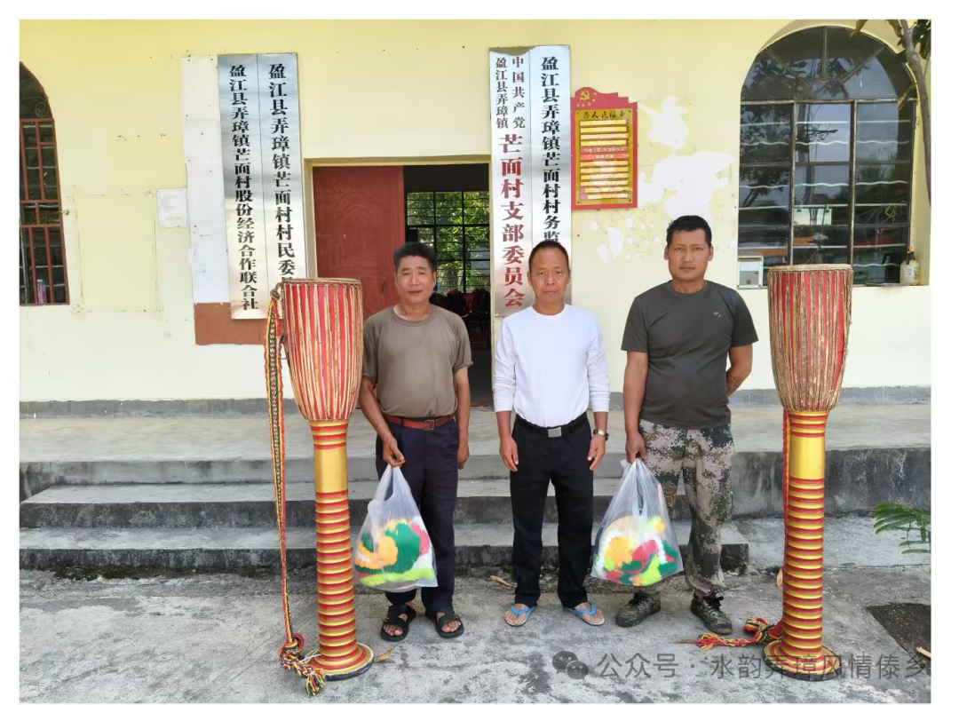 “民族文化是流淌在血脉里的乡愁。”驻村干部在交接仪式上动情说到。芒面村作为85%人口为少数民族的抵边村寨,上帮中小组的景颇目瑙纵歌、仙岛小组的阿昌蹬窝罗舞,皆是省级非遗项目。乐器赠送并非简单的物资支持,而是通过“活态传承”激活文化基因——让青年在节庆中敲响祖辈的鼓点,让孩童在校园里吹奏民族的韵律,让中缅边民在跨境文化交流中听见中华文化的多彩共鸣。
