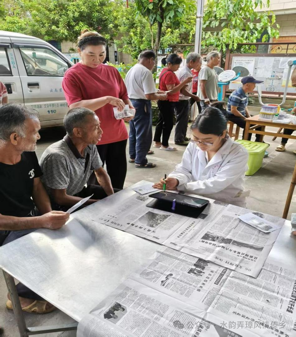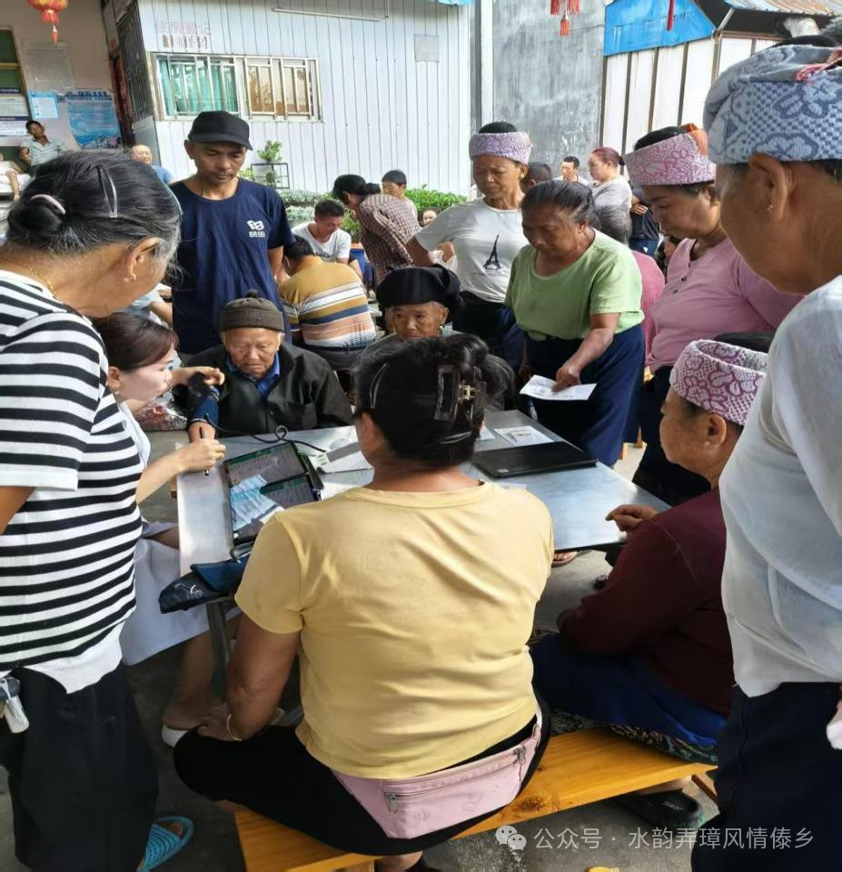 体检现场,弄勐村“两委”及驻村工作队早早来到村委会体检点,和医护人员安排布置场地,为前来老年人及慢性病群众做好登记、引导,方便大家有序进行检查。